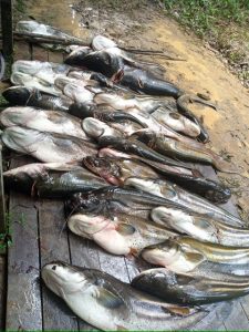 1 ekor ikan Tapah beratnya mencapai 65 Kg sedangkan yang lainnya rata-rata beratnya 15 Kg