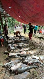 Hasil tangkapan kali ini cukup melimpah, tercatat sebanyak 65 ekor ikan Tapah dengan total berat mencapai 750 kilogram.