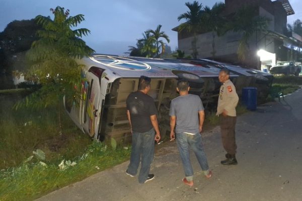 Bus Robot Betania Terguling di Seberuang, 21 Penumpang Selamat Tanpa Luka